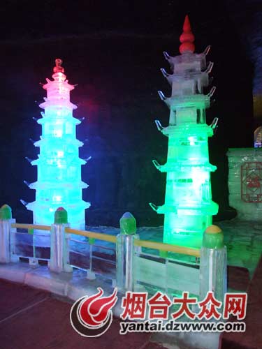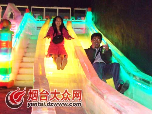 在地下冰宫,原本炎炎夏日突然变成了寒冬,进门前要租穿羽绒服,冰砌的海盗船、水果屋晶莹剔透,特别好看,坐在长长的滑梯上顺坡滑下,十分刺激,让人留连忘返。