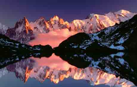 那是欧洲最大、最雄伟的山脉。绵延不绝的山峦顶着白色的山尖,在阳光下闪着金光。目光收回,脚边是芳草碧连天的丘陵和无边无际的繁花。田垄、树林、山岗仿佛在练着瑜珈,个个将身子延伸得很长;不知名的小湖、小河,像孩子眼角挂着的泪水,透着晴空般的蓝,荡漾着雪山的影子;芦苇草、蒲公英等各色野花舒舒坦坦、整整齐齐地围着明镜般的湖面。小镇上,大伞盖似的老树遮蔽出一条林荫小道。沿路前行,你会发现一个路牌,上面写着:慢慢走,欣赏啊。