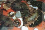 刺参是我国20多种食用海参中质量最好的一种,也是蓬莱最重要的海产珍品之一。刺参属棘皮动物海参纲,体呈圆筒状,背面隆起,有4-6行大小不等、排列不规则的圆锥体肉疣,腹面平坦,管足密集,排列成3条不规则纵带。刺参喜生活在水深3-15米、底质为岩石、海藻生长繁茂、风浪冲击较小、无大量淡水注入的海区。刺参营养丰富,蛋白质含量高,不含胆固醇,是高级滋补品,为海珍品之冠。还含有硫酸软骨素,有强体抗衰、抑制肿瘤的功效。中医认为:"海参性温补,足敌人参"。