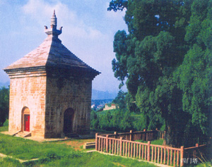 塔内正中央有一个四方平台,平台上有一座方形塔心柱,塔心柱上方以十六块三角形石梁和塔身相联系住塔顶。