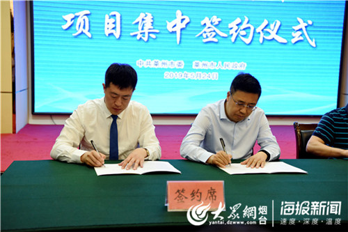 大众网·海报新闻5月24日讯 (通讯员 张艺凡 记者 徐雨梅) 5月24日,莱州市沙河镇参加了第二十九届莱州市月季花节项目集中签约仪式,党委书记王学源与云南水务股份投资有限公司副总经理王瑞就循环经济产业园项目进行了签约。