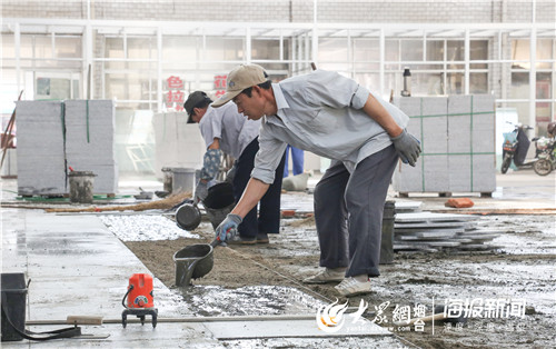 在万通市场二期升级改造工程施工现场,记者看到工人们正在铺设地砖,现场一片热火朝天的景象。据了解,二期改造工程将于中秋节前后完工,届时将会把市场内的蔬菜销售商户集中到改建后的大棚内,让市民购物更加方便。