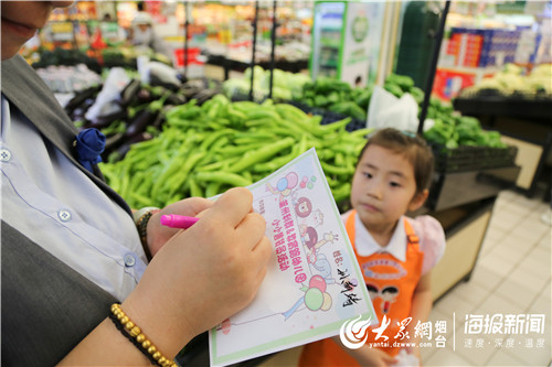 活动中,幼儿每成功销售出一件商品,超市工作人员都会在幼儿随身携带的“工作卡片”上做上一个五角星标记,经过近两个小时的销售,幼儿们“收获颇丰”,有的小卡片上已经画满了五角星标记。活动结束后,每位幼儿都领到了由利群超市提供的精美纪念品。