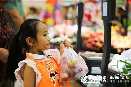 活动中,30名大班幼儿变身“小小售货员”,来到超市的零食、乳制品、蔬果、进口食品等区域参与商品销售工作。体验之初,不少幼儿还有些害羞,不敢与顾客进行交流,在老师、家长以及超市工作人员的耐心鼓励下,他们与顾客间的交流慢慢变得熟练起来。“阿姨您好,您是要买西红柿吗?我可以帮您打包过称。”来往市民纷纷对这群又热情又有礼貌的“小售货员”竖起了大拇指。