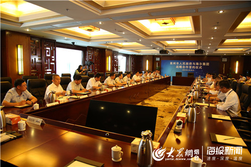 大众网·海报新闻莱州6月26日讯 (通讯员 鞠中达 姜建彬) 6月25日,莱州市与海尔集团战略合作框架协议签约仪式在海尔集团董事局大楼举行。双方在传统产业转型、新兴产业集群、双创平台共建、智慧城市建设、产城融合示范、乡村振兴样板等领域达成合作意向,海尔集团将把“人单合一”理念引入莱州,以六大领域为切入点,不断加大在莱州的投资力度,确保合作共赢。