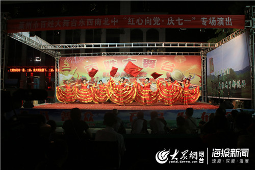 大众网·海报新闻莱州7月1日讯 (记者 孙国栋 通讯员 徐菡婧) 为庆祝中国共产党成立98周年,弘扬时代精神,向党的生日献礼。莱州市文化和旅游局组织开展“百姓大舞台东西南北中红心向党”演出活动,6月30日,启动仪式在莱州剧院广场盛大呈现。