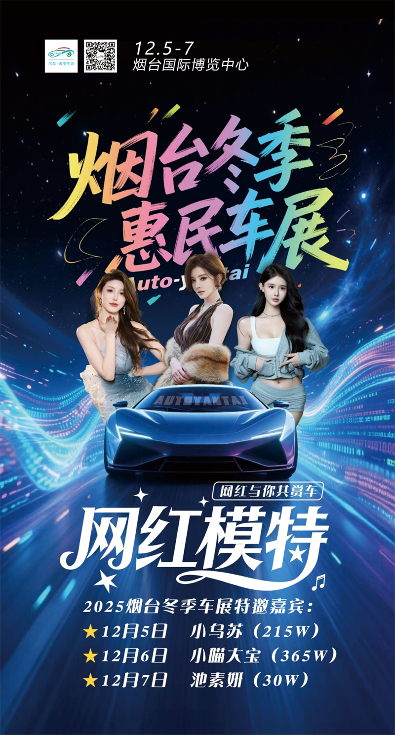 本年度最后一场购车狂欢即将到来,2025烟台冬季惠民车展以“惠民、便民、利民”为宗旨,将开放烟台国际博览中心B、C、E、F馆室内及部分室外共约30000㎡展览面积,汇聚奔驰、宝马、上汽奥迪、林肯、沃尔沃、岚图、阿维塔、鸿蒙智行、理想、猛士、丰田、极氪、智己、方程豹、腾势、本田、smart、乐道、Jeep、昊铂、别克、福特、小鹏、零跑、领克、大众、比亚迪、捷途、深蓝、吉利、北京越野、荣威、奇瑞、奔腾、现代、传祺、红旗、极狐、马自达、荣威、乐奔房车等60+主流燃油车、新能源车、房车等品牌。