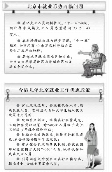 北京市劳动和社会保障局副局长宋丰景强调,北京就业工作不能局限在城镇,要建立覆盖全市城乡统一的就业服务体系,促进北京市农村劳动力转移就业,并加大其扶持政策。