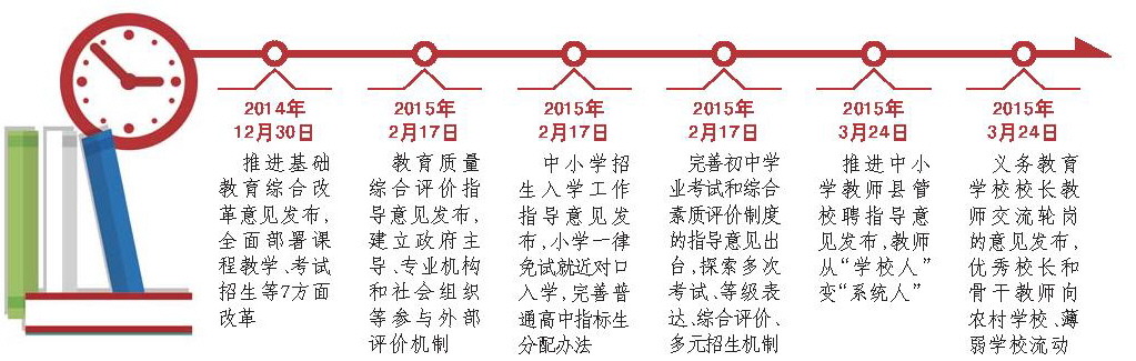 2014年年底,我省推进基础教育综合改革的意见正式出台。截至目前,20个配套文件中的17个已陆续颁布,标志着我省基础教育立体化综合改革顶层设计大致完成。本次改革强调市域统筹和整体推进,鼓励基层首创和大胆实践,为山东教育改革按下快进键。