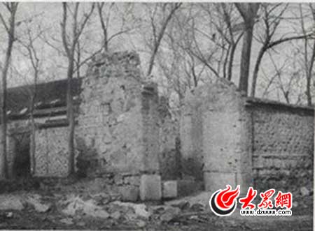 1938年1月30日,日寇炮击河东村炸毁的民宅门楼残迹