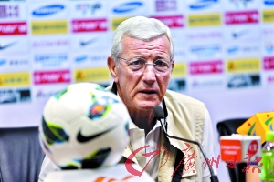 里皮表示,广州恒大与广州富力之间的关系非常融洽。 本报记者 廖艺 摄