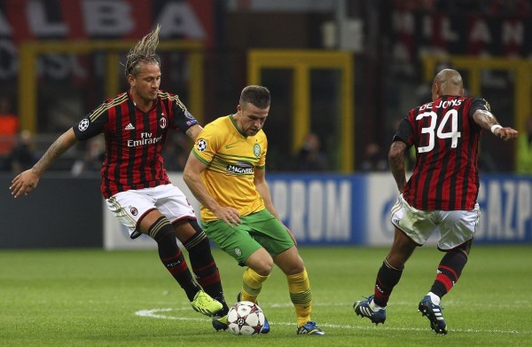北京时间9月19日凌晨2点45分钟,201314赛季欧冠小组赛H组展开首轮角逐,AC米兰坐镇主场迎战苏超霸主凯尔特人。上半场两支球队均未能取得进球,下半场斯托克斯任意球击中横梁,终场前萨帕塔和蒙塔里在4分钟内先后破门,米兰最终2-0击败凯尔特人,拿下了欧冠小组赛首轮比赛的胜利。[详细]