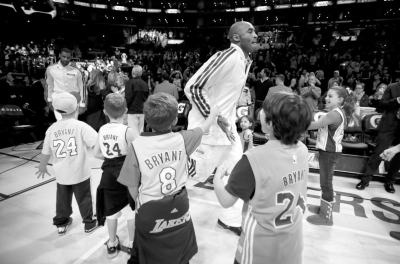 8日,湖人队球员科比(上)在入场时受到孩子们的欢迎。新华社发