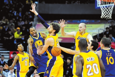 比赛开始后,科比挨着主帅德安东尼坐下,跟后排的工作人员要了一枚口香糖嚼起来,随后边和队友聊天边看比赛。镜头频频停留在这个“超级观众”身上,每次大屏幕上出现“小飞侠”的身影,球迷们都像刚开场时那样欢呼尖叫,热情丝毫不减。上半场勇士几次将分差迫近,每逢湖人陷入被动,“换科比”的声音就会从看台上山呼海啸般地响起。没有超级巨星压阵,比赛进行得有些乏味。加索尔、卡曼、尼克·杨三箭齐发,加上纳什调度有方,湖人一路领跑,三节结束时领先11分。勇士头号球星库里手感冰凉,前三节三分球6投全失,新援伊戈达拉也屡屡打铁,全仗大卫·李一人与对手抗衡,这位球风朴实的大个子全场砍下31分。最后一节,库里找回手感,三分球4投3中。眼看湖人被紧追,科比再次化身教练,频频与换下场的队员交流,有时还和主帅德安东尼探讨一下场上情况。“小飞侠”的积极并没换来一场胜利,最后还是勇士反败为胜。不过在中国,NBA季前赛的结果并不重要,重要的是球迷们见到了偶像科比,这就是今年NBA中国赛的成功之处。