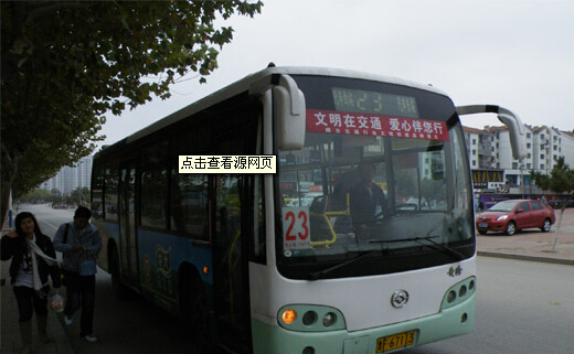 23路公交车。全程为39公里,线路单向共设置74个候车站点,单程运行时间约为100分钟。这条横跨港城开发区、芝罘区、莱山区的公交线路也成为全市首条正式运营的节能环保新能源公交示范线。