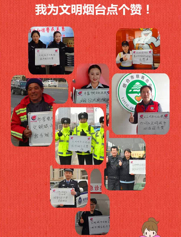 自即日起,大众网烟台频道在全国范围内发起“文明城市四连冠,我为烟台点赞”活动。不论您现在身在何方,只要您正在或曾在烟台长期居住,我们邀请您将您为烟台文明城市四连冠点赞的照片,连同相应文字说明,在3月28日前发送给微信。我们将精选图片故事,于3月31日发表于大众网烟台频道。文明烟台城,有您更精彩!