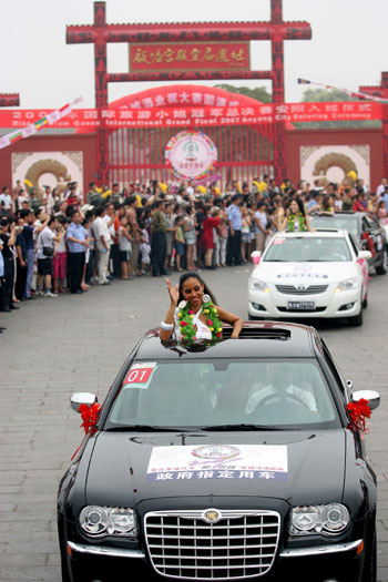 7月27日,2007国际旅游小姐冠军总决赛的108名世界各地的佳丽们,把她们的美丽带到了河南安阳。早上8点30分在著名的安阳殷墟宫殿宗庙遗址,举行了富有商周时期特色的仿古入城欢迎仪式。随后佳丽们分三组前往:殷墟宫殿宗庙遗址、安阳钢铁集团有限责任公司、安阳市区等地花车巡游。