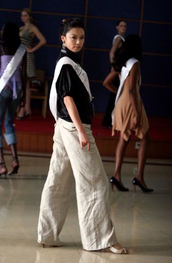 利用排演的间隙,我们采访了一些参赛选手。乌克兰小姐Maryna Timoshenko、阿尔巴尼亚小姐Edlira Mema她们两位在参加“2007国际旅游小姐比赛”之前,因为自身良好的条件和兴趣都是兼职的模特。乌克兰小姐Maryna Timoshenko供职于一家粮食公司,而阿尔巴尼亚小姐Edlira Mema则是一名主修法律的大学生。对于这次中国之行,乌克兰小姐Maryna Timoshenko来之前就通过因特网和书籍,查看了许多关于中国的文化与传统方面的知识和最近与中国相关的新闻,希望自己尽可能多的了解中国……虽然做过充分的准备,但真正踏上这片广阔的土地,除了带给她很多的意外惊喜之外,当然还包括没有预计到的潮湿闷热的天气和对她而言过于辛辣的中国食物。但是她没有过多的抱怨,因为双溪漂流、西湖美景、修竹密林……这些难忘的珍贵经历早就抵消了所有的辛苦与不适。