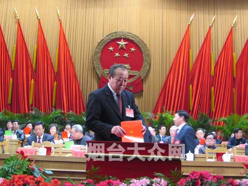 在主席台就座的还有:市委副书记、市长周齐;市政协主席栾秉良;市委副书记、常务副市长张建华,市委副书记范庆梅,市委副书记、纪委书记张心骥;市委常委王秀臣、郝德军、赵强、刘树琪、谭伟、于爱军、郭兴元;副市长孙炳贤、田明宝、李淑芹、刘筱杰、张仁强、王国群;市中级人民法院院长刘为群;市人民检察院检察长潘锡海;市政协副主席傅其明、吕志海、戴绍琴、李克英、张维利、张行如、祝发龙、罗开田、孙承贤;烟台警备区司令员荣森之;预备役76师师长谢玉乐;曾担任过正市级以上领导职务的同志:路升云、黄岗、曲元显;主席团成员的原市人大常委会负责同志:王树建、荣凤刚、卢成金、孙毓瑛、李皆荣、张英春、丁桂盛、邹梅清、刘树柏;主席团其他成员。市十四届人大四次会议列席人员列席了会议。 大会执行主席、主席团常务主席焉荣竹主持了会议。