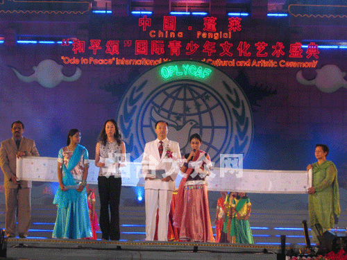 烟台大众网8月20日讯(通讯员 张绍贤 徐爱兵 特派记者 刘志宏 马敏)8月20日晚,蓬莱和平广场上,花团锦簇,华灯齐放,“和平颂”大型开幕晚会在这里举行。晚8时整,伴着悠扬的音乐,300多名不同肤色的青少年涌上舞台,跳起动感十足的“街舞”。歌声、掌声、音乐,交织在一起,描绘出一幅太平盛世的画卷。霎时,六道火焰射向广场外围,点燃了矗立在观众席后的“和平圣火台”,和平圣火腾空而起,数百只象征着和平的白鸽从舞台放飞,飞向遥远的夜空。第六届中国蓬莱.“和平颂”国际青少年文化艺术盛典正式拉开了帷幕。