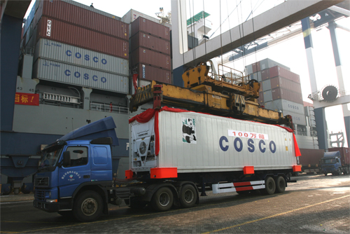 截至12月19日,烟台港芝罘湾港区集装箱吞吐量突破100万标箱,集装箱总量跃居全国十强,从29万标箱发展到100万标箱仅用了两年时间。烟台港优化资源配置,改善通关环境,通过与中海、中远等大公司合作,成为半岛制造业基地物流中心之一,渤海湾乃乃至东北亚的中转枢纽港。通讯员 王涛 记者 曲怀生