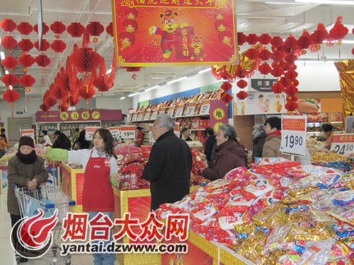 烟台大众网2月3日讯 (记者 张雪松) 春节临近,烟台市区各大超市“年货大集”全面启动,多种促销活动让市民享受到了实惠。