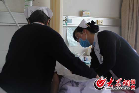 烟台市烟台山医院呼吸内科护士长王永红介绍,随着老龄化社会的来临,呼吸道疾病中老年患者居多,而温度越低呼吸疾病越高发,每到过年期间,在病房住院的患者能达到50—60名。护士夜间需要双岗值班,每过1小时,都需要帮助患者叩背、翻身,避免患者出现压疮。