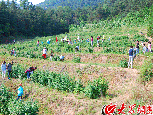 昆嵛山树莓基地2011年从美国引进哈瑞太兹红树莓,今年开始成熟。树莓不打农药,不施化肥,加上昆嵛山的山泉水浇灌,是真正的绿色、有机、健康水果。炎炎夏日,想要快乐多多、健康满满,可以到昆嵛山游山玩水、露营赏花,到红松林天然氧吧呼吸新鲜空气,到水帘洞品甘甜的山泉水,再品尝一下绿色无污染的健康树莓。