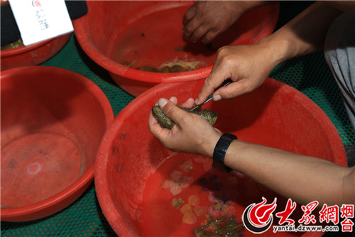 现场处理海参(孙金忠 摄)