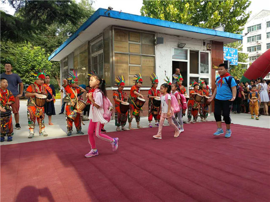 学校为孩子们准备了红毯仪式和非洲鼓表演