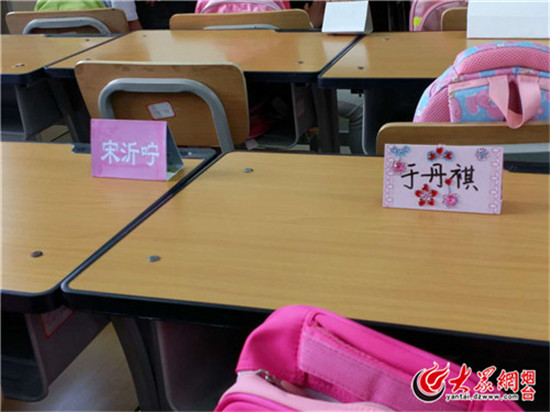 记者发现每个新生面前都放着自己的专属“名片”,林承娟副校长解释道:“这是我们在上周四的家长会上留的‘作业’,让孩子们在家长的帮助下亲手制作自己的名片,要求不能打印,制作名片的目的一方面是为了方便老师认识学生,另一方面也便于学生之间相互熟悉。”