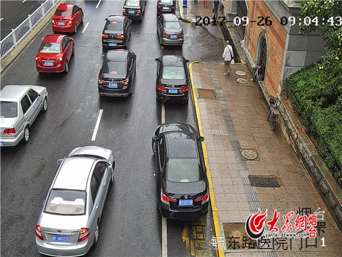 大众网烟台9月27日讯 (通讯员 曹杰 李娜 记者 王瑜) 记者从烟台市公安局交警支队获悉,即日起,交警部门在毓璜顶医院门前毓璜顶东路上增设6处监控设备,全部自动抓拍乱停车违法,凡是在黄色网状线区域内停留超过5秒钟未驶离的将被抓拍,按照机动车违反禁令标志指示的行为,处200元罚款、记3分的处罚。以此缓解医院门前拥堵现状,打通生命通道。