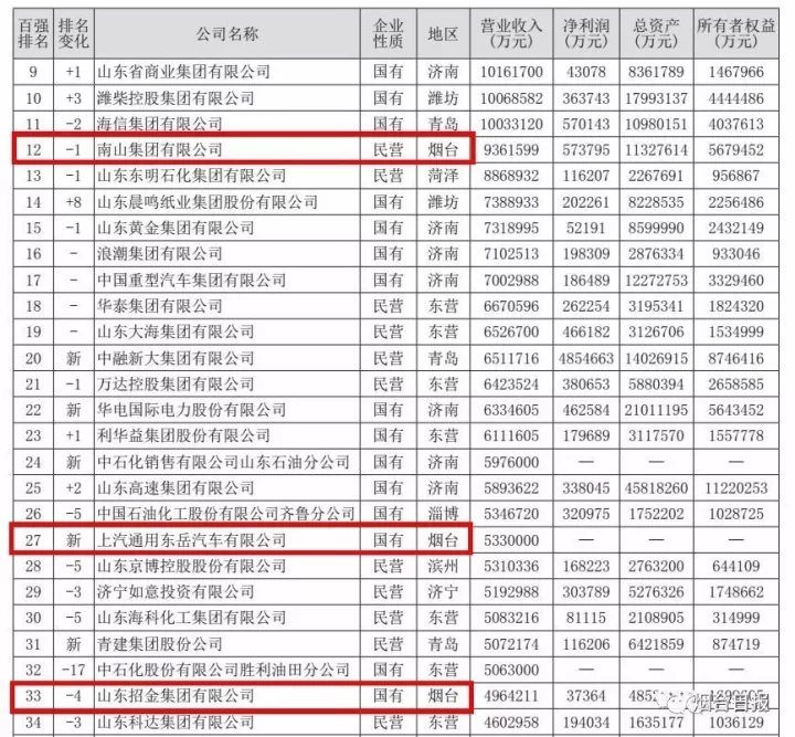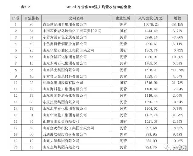 2017山东制造业企业50强实现营业收入31927.83亿元,位列前十名的企业依次为: