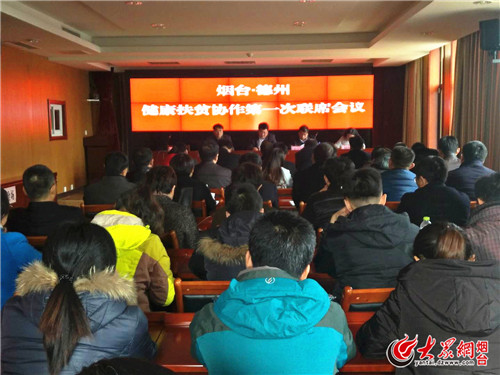 大众网烟台11月24日讯 (记者 蔡云飞) 11月24日,烟台德州健康扶贫协作第一次联席会议在烟台莱山区召开。会议由烟台市卫计委办公室主任仪明刚主持,德州市卫计委爱卫办主任翟学军、烟台市卫计委副主任崔伟、德州市卫计委周晓晖科长出席会议。