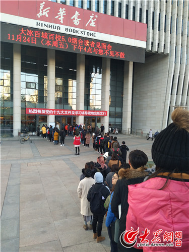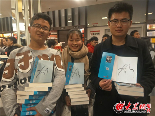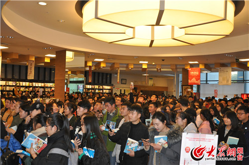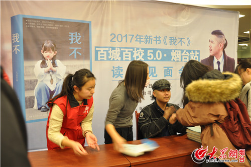 大众网烟台11月24日讯 (记者 蔡云飞) 11月24日下午4时,《我不》“百城百校5.0·烟台站”读者见面会在烟台新华书店开幕,大冰携新书亮相,为两千余名慕名而来的读者签名并一一与之握手,现场气氛热烈。