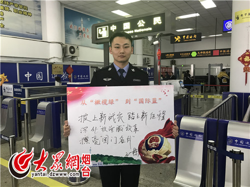 大众网烟台·海报新闻1月1日讯 (记者 王瑜 见习记者 于伟杰) 1月1日上午,烟台出入境边防检查站全体民警身着崭新警服,隆重举行集体换装宣誓仪式,正式向军旅生涯告别,向移民管理事业致敬。从“橄榄绿”到“国际蓝”,民警们纷纷表示,将不忘初心,继续擦亮“国门名片”。