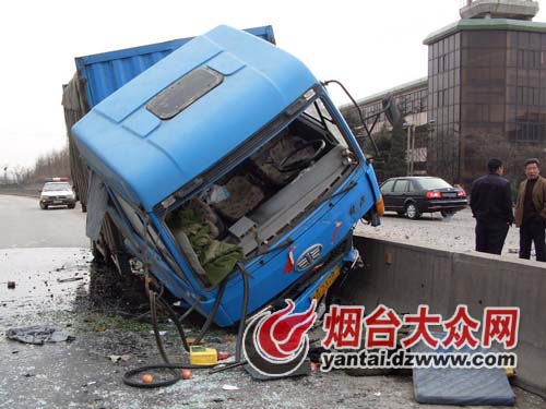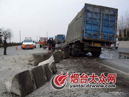 2月16日上午8时许,一辆鲁G牌照重型厢式货车在204国道88K+255M处自东向西行驶时,撞上混凝土隔离墩,在越过5段混凝土隔离墩后才停下,货车车头严重受损,司机头部受伤。事故发生后,莱阳公路局路政人员立即赶往现场,迅速组织养护人员对损坏的隔离墩和200多平米污染路面进行处置,及时恢复了正常交通。事故原因仍在调查中。 通讯员 李梦 于云利 见习记者 张其天 摄影报道
