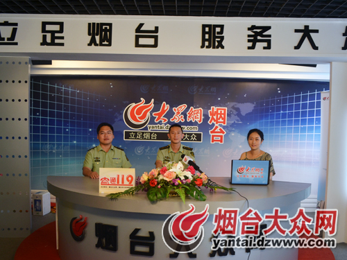 烟台市公安消防支队开发区大队副大队长顾兆晶、参谋罗毅走进大众网嘉宾访谈室