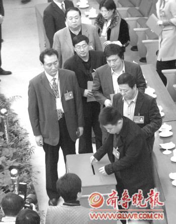 政协委员将选票投入投票箱。本报记者 赵金阳 摄 |