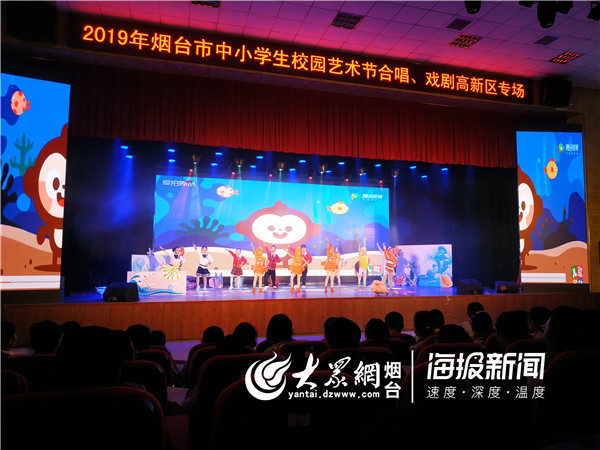 大众网·海报新闻烟台高新区5月27日讯 (记者 苑菲菲 通讯员 马梅利) 5月24日,烟台高新区实验中学礼堂灯光璀璨,歌声嘹亮,2019年烟台市中小学生校园艺术节合唱、戏剧暨学生艺术实践工作坊高新区专场展示活动正在举行。