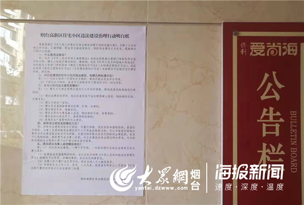 活动现场发放《烟台高新区住宅小区违法建设治理行动明白纸》300余份、在交房楼宇内张贴20余份。