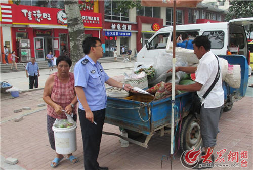莱山区城市管理行政执法大队在烟大附近整治占道经营现象