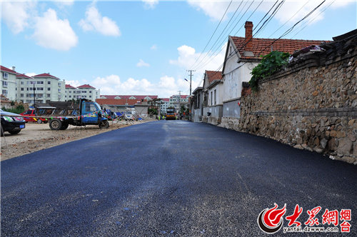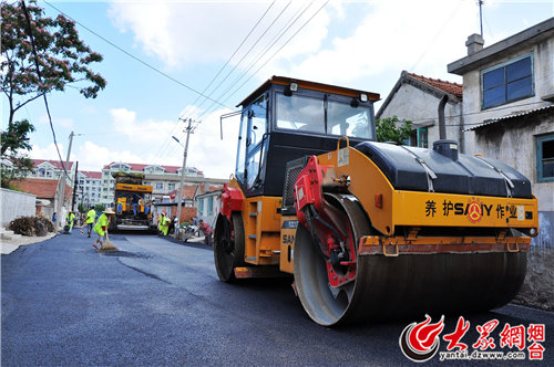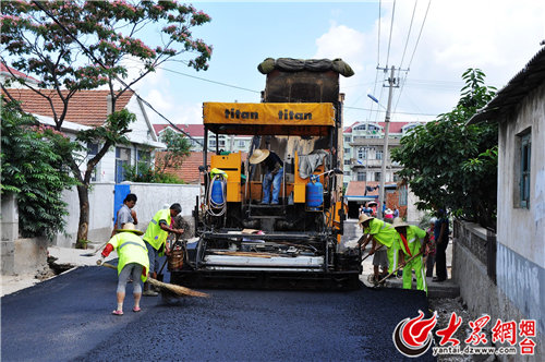 莱山公路局在莱山街道西村进出口道路铺筑沥青砼面层