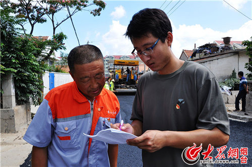 莱山公路局党员先锋队高温下进村修路获村民点赞