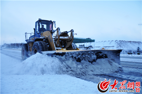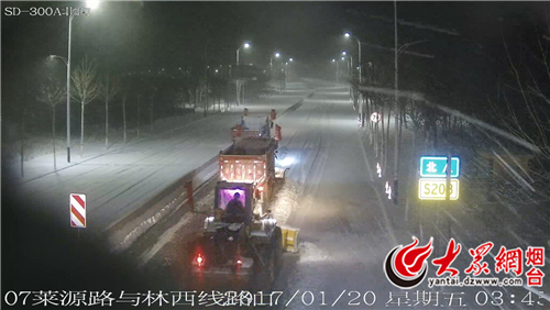 凌晨3点,降雪厚度达7厘米,臧明强召集起操作手们热车准备,将机械设备分为莱山立交南至林西线(北段)、林西线至小十八盘牟平界(南段)两组。凌晨3点半,梯形作业车组全部到位开始清雪,融雪剂撒布车紧跟其后。北段清雪较为顺利,至凌晨5点半完成。南段山高、雪大清雪压力较大,至早6点半路面积雪基本清除。随后,机械设备单车作业,分工清理公路沿线平交道口。