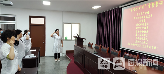 6月11日,妇保院“安全生产月”活动正式启动,妇保院院长李菊萍对活动致词,副院长于超带领全院全体职工高举右手,郑重宣誓:“为了家人幸福,为了妇幼保健院发展,我宣誓…”启动仪式后,全院职工先后观看了安全生产“大家谈”云课堂,围绕安全生产责任落实、隐患排查等内容进行学习。培训后,全院职工进行了安全生产月知识答题考试。