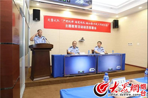 莱州公安交警大队组织召开主题教育活动动员部署会。会上,深刻分析了当前莱州交警队伍纪律作风方面存在的突出问题,要求把活动开展作为贯彻落实从严治党、从严治警的迫切需要,作为解决突出问题、改进提高工作的重要举措,作为加强队伍建设、树立良好形象的迫切需要,推动活动落地生根、取得实效。