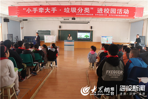 大众网牟平·海报新闻4月18日讯 (通讯员 宋莉萍 记者 李广圣) 生活垃圾分类已然成为社会新时尚。为快速引导烟台市牟平区市民参与生活垃圾分类,不断加强生活垃圾分类知识宣传,4月18日上午,由牟平区综合行政执法局、新牟小学、宁海街道通海路社区共同举办的“小手牵大手·垃圾分类”进校园活动在新牟小学报告厅举行,活动通过培训课件和互动游戏等方式,帮助学生们学习到了更多垃圾分类的知识。
