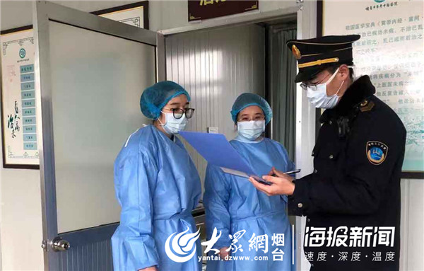 牟平区卫生健康监督所工作人员对医疗卫生机构进行督导检查