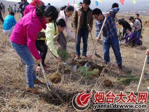 学校、企业共建美丽烟台 赴栖霞植树造林